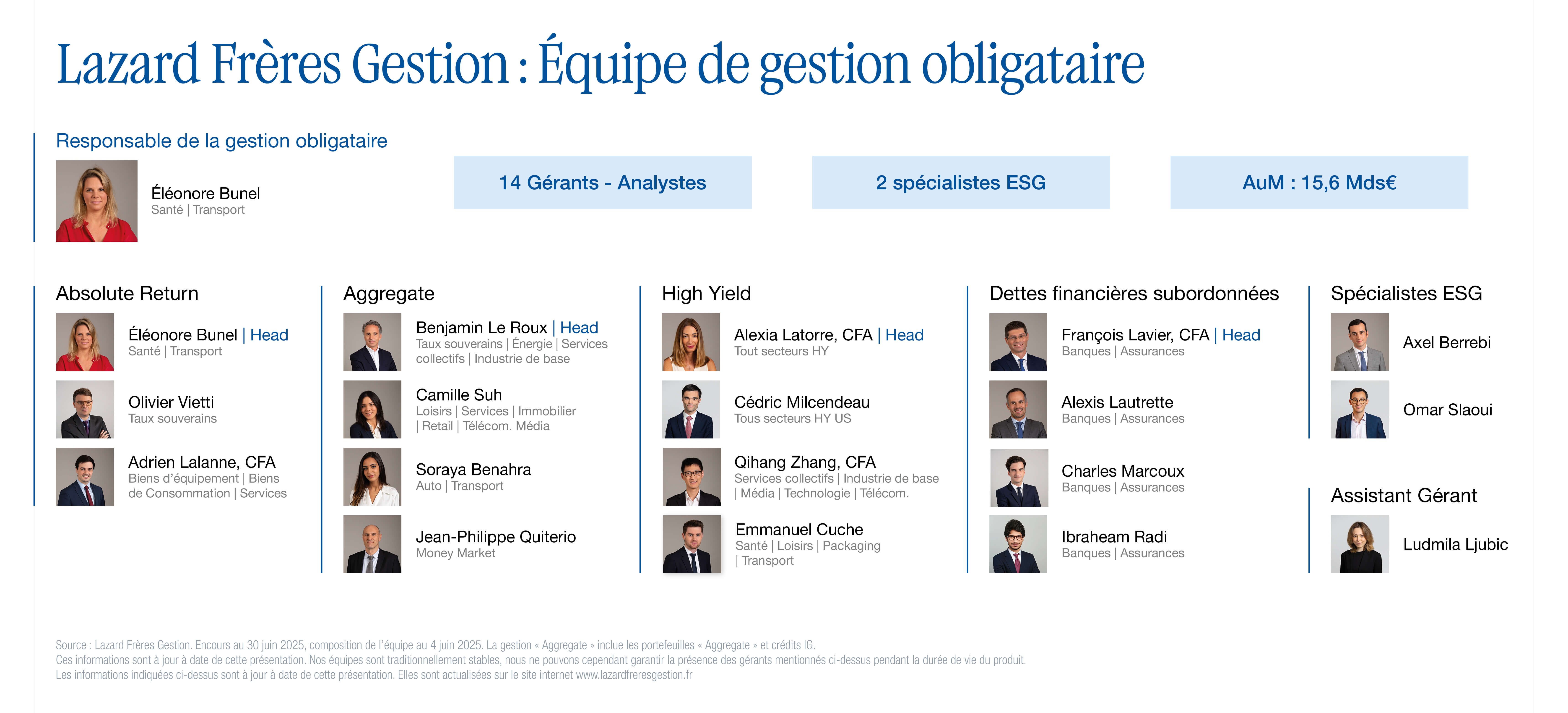 Des exemplaires du Prospectus complet, du Document d'information clé (DIC PRIIPS) pour les produits d'investissement aux particuliers et assurances (Reglementation PRIIPs) et des derniers Rapports et Comptes en français et, le cas échéant, dans d'autres langues, sont disponibles sur demande à l'adresse ci-dessous ou sur www.lazardfreresgestion.fr. Les investisseurs existants et potentiels sont priés de lire et de prendre note des mises en garde relatives aux risques figurant dans le prospectus et le DIC. Les décisions d'investissement doivent être basées sur l'examen de toutes les documentations du fonds, les décisions d'investissement finales ne doivent pas être prises sur la seule base de cette communication. Des informations supplémentaires sur la durabilité du fonds sont disponibles à l'adresse Internet ci-dessus. Lazard Frères Gestion se réserve le droit de retirer ce fonds de la commercialisation à tout moment et sans préavis.